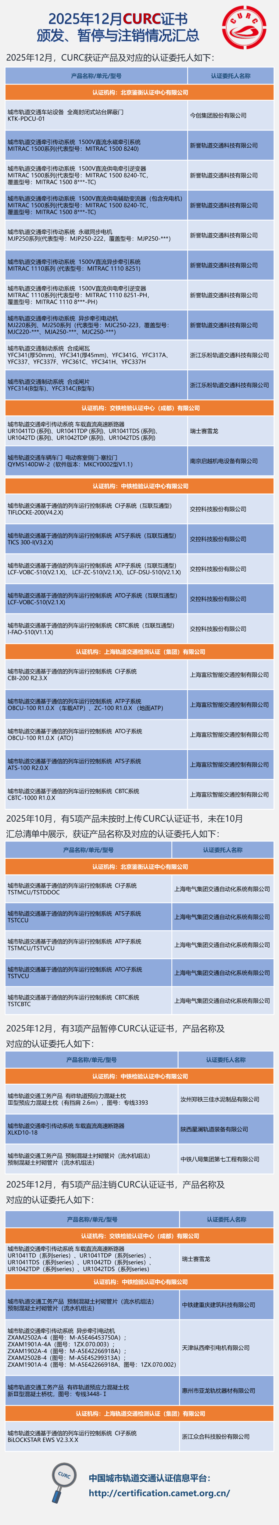 2025年12月CURC证书颁发、暂停与注销情况汇总