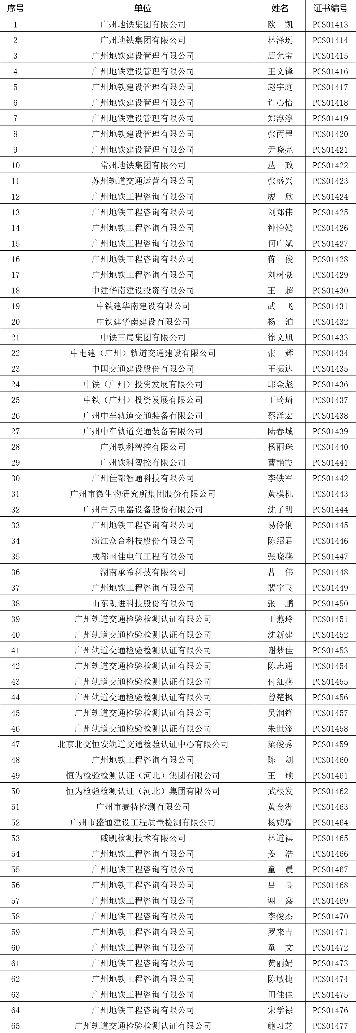 第八期城市轨道交通装备产品认证专员培训结业名单